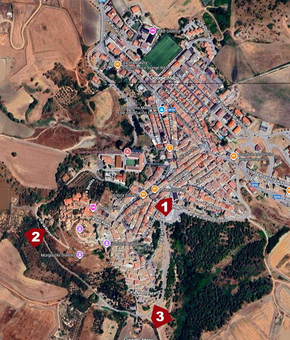 Abbiamo individuato tre punti o zone di ubicazione possibile di questa Bottega,attenendoci ai seguenti criteri:
