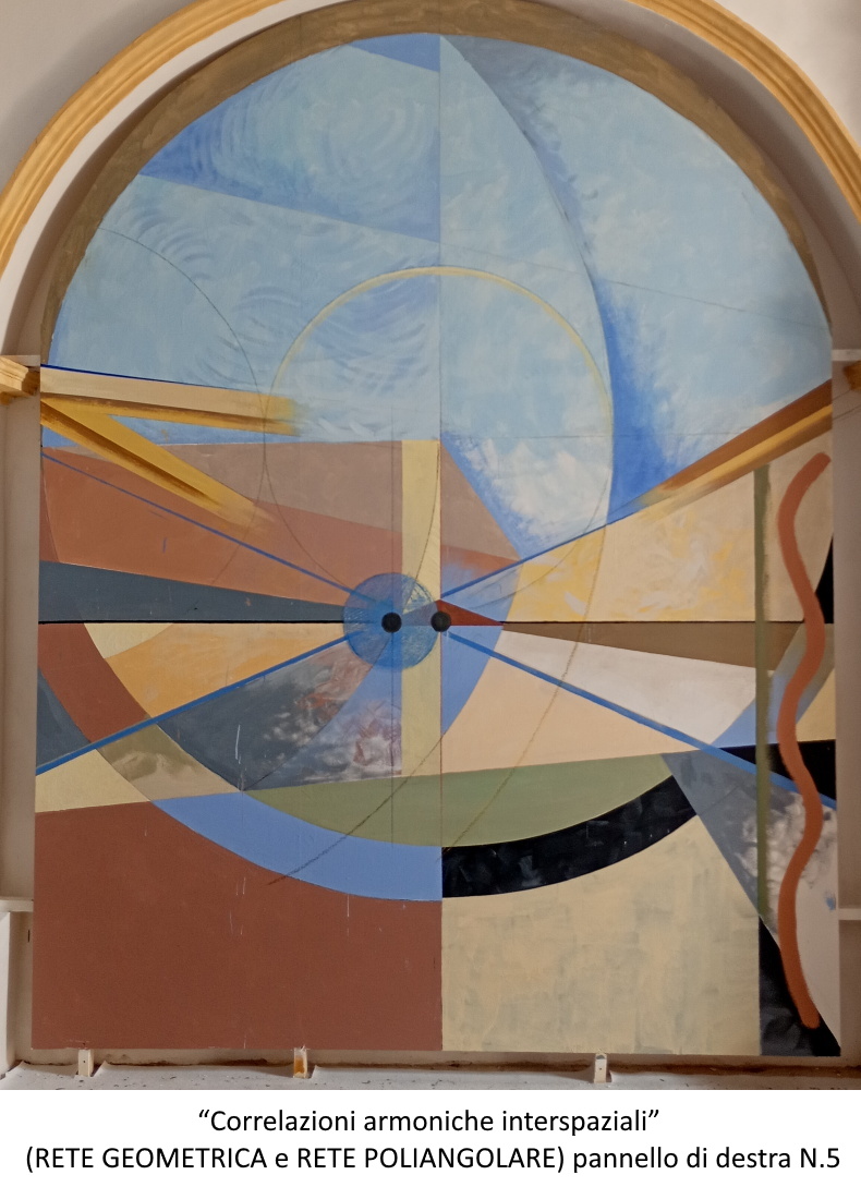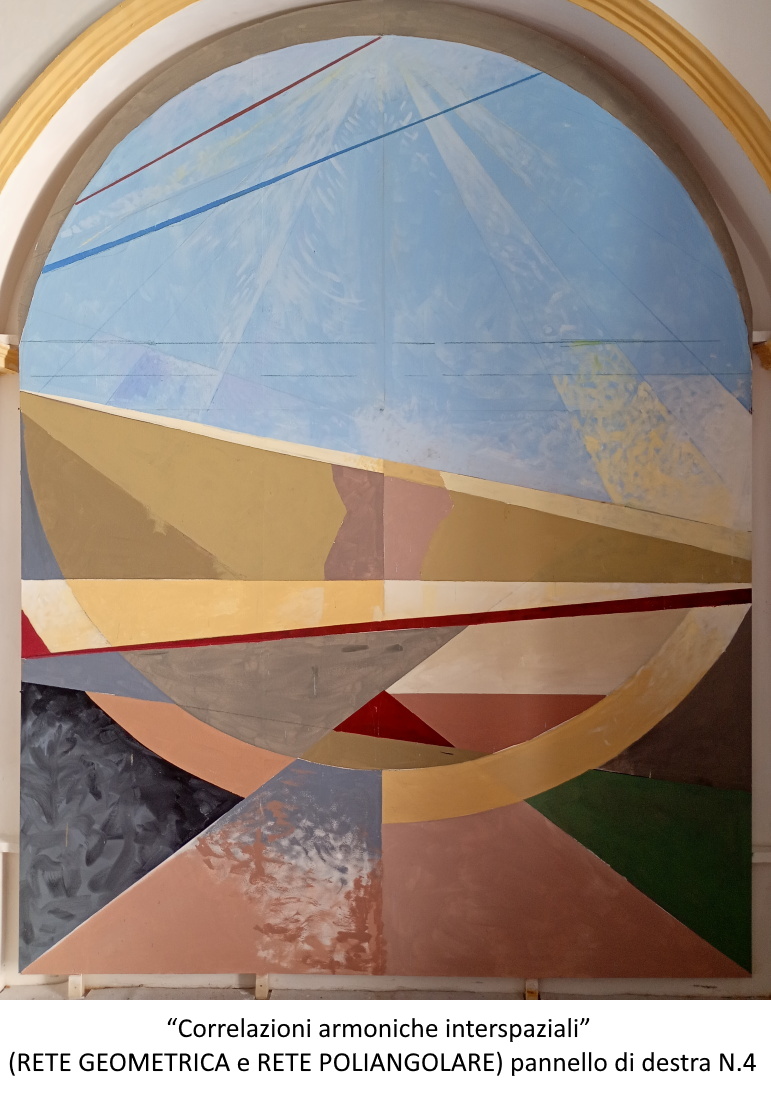 Nel nostro caso, che come scritto prima, abbiamo voluto essere anche propedéutico e didattico, si sono presi in considerazione solamente due punti di vista e poi si sono colorate in modo soggettivo ed emozionale le zone o aree tracciate dalla “RETE GEOMETRICA” e dalla “RETE POLIANGOLARE” che sono le strutture compositive fondamentali, oggettive e dimostrabili, delle Pitture Murali che successivamente abbiamo realizzato.