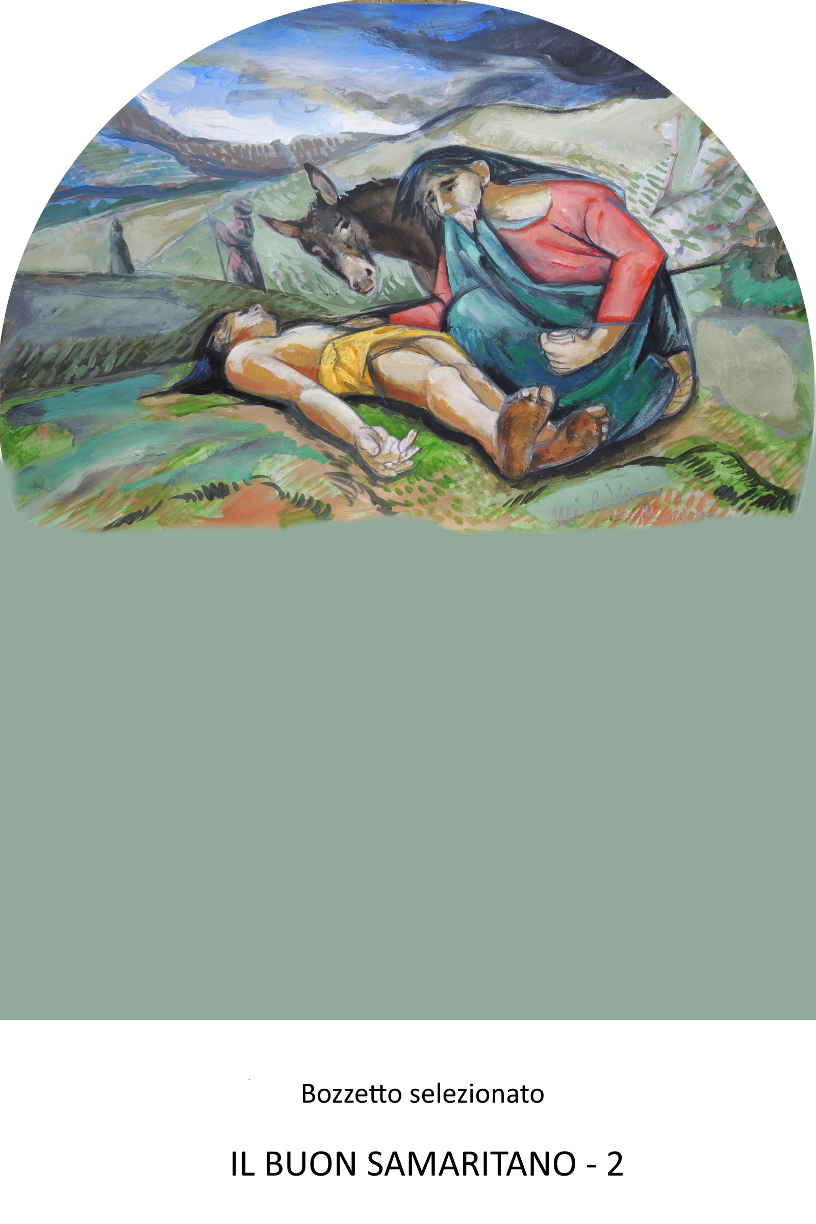 Questa seconda fase é stata anche pianificata dal proposito espressivo del Progetto delineato con il collega Maestro Salvatore Lovaglio a favore di una opera “in progress”, suscettibile di ripensamenti, come un “Laboratorio Aperto di Muralismo Contemporaneo”, e in questo modo ho iniziato lavorando al primo pannello, quello dedicato al Sant’Antonio Abate, forse diminuendo questa tensione o proposito nei dipinti successivi, favorendo una attenzione probabilmente eccessiva per i dettagli.