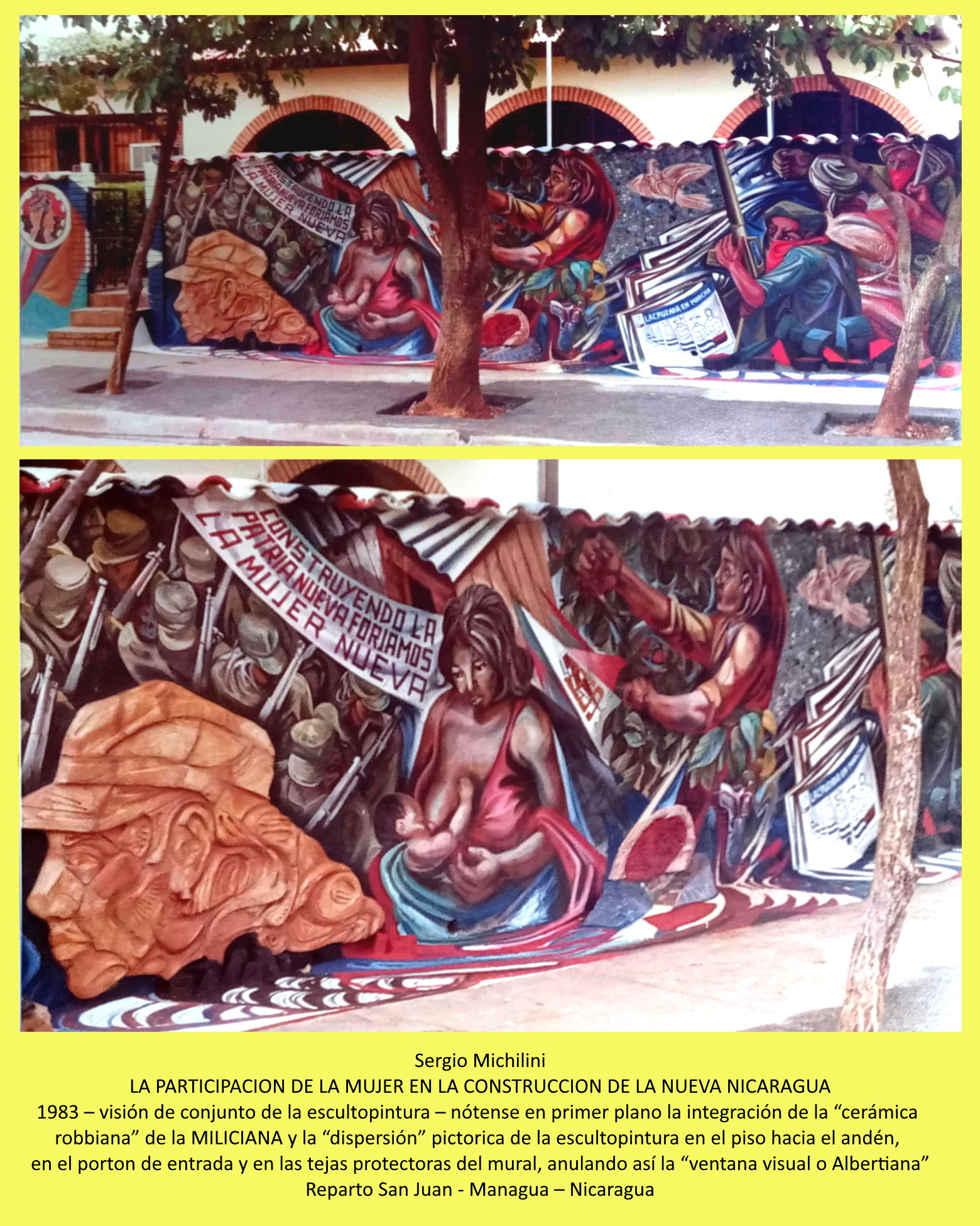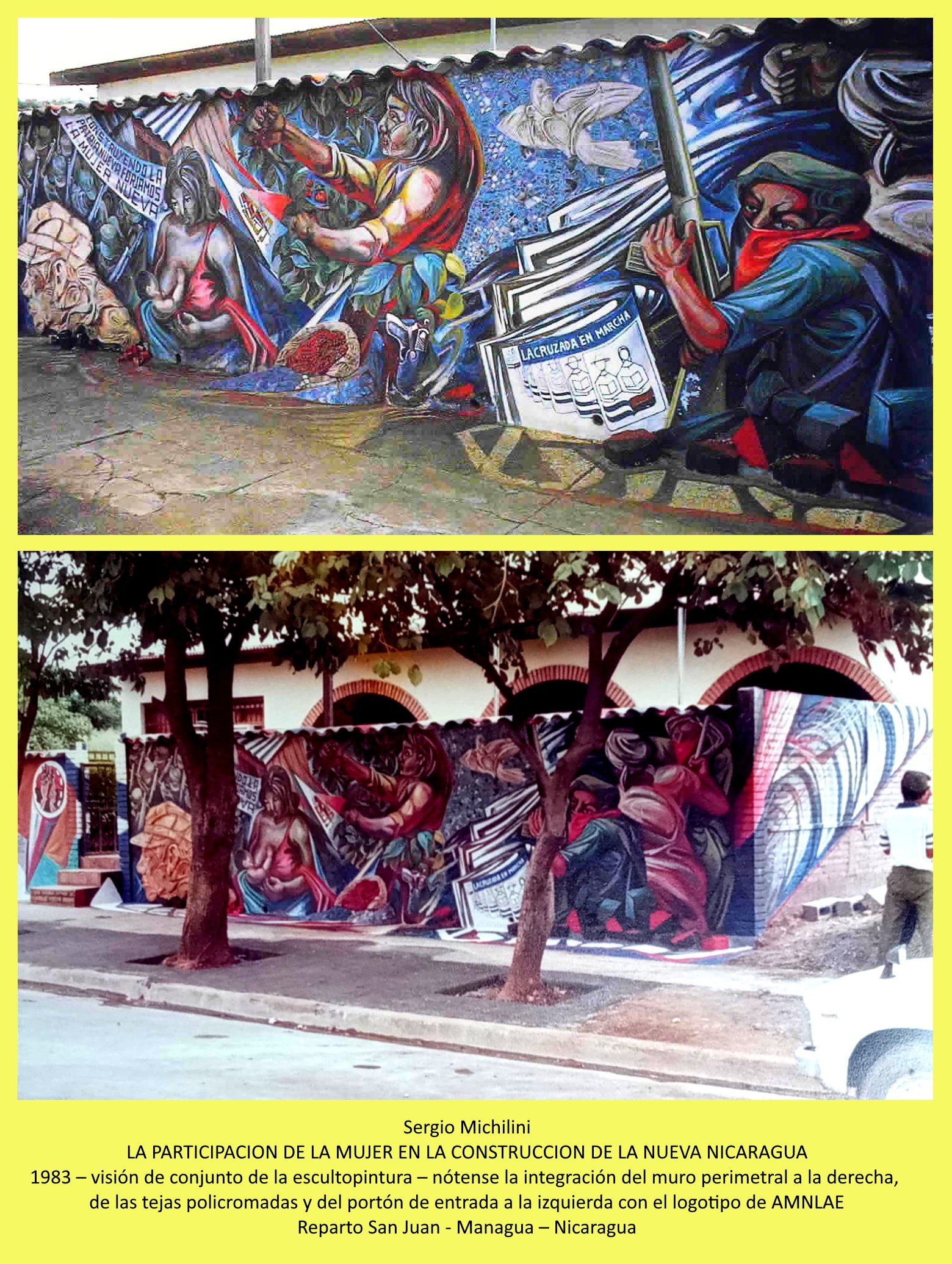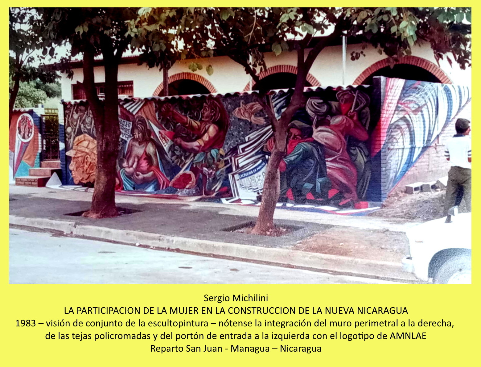 En julio de 1983 realizamos una “escultopintura” en el muro frontal de la “Casa Nacional AMNLAE” (Asociación de Mujeres Nicaragüenses Luisa Amanda Espinoza) que prácticamente determinó la aprobación del financiamiento para el Proyecto de la “Escuela Nacional de Arte Público-Monumental David Alfaro Siqueiros” en Managua, Nicaragua