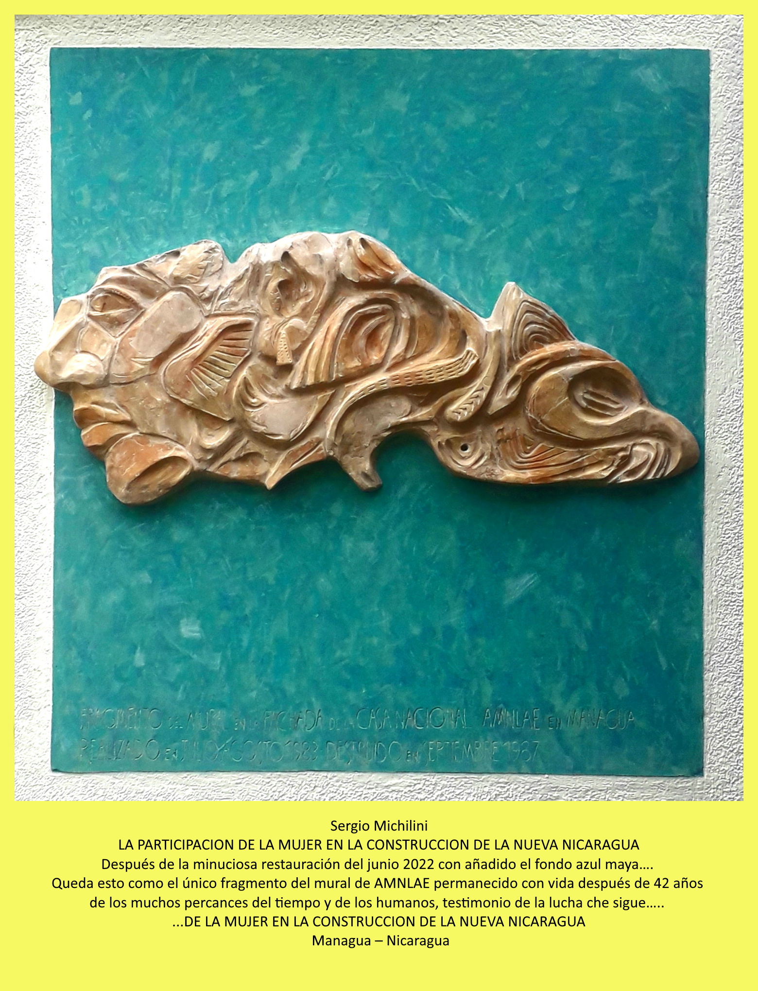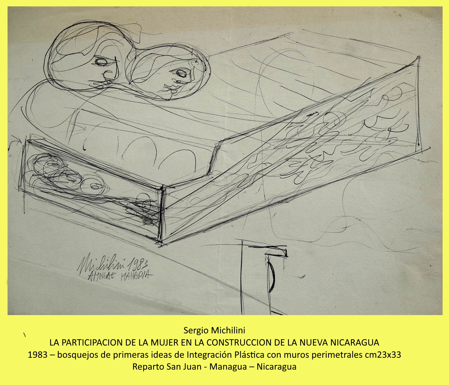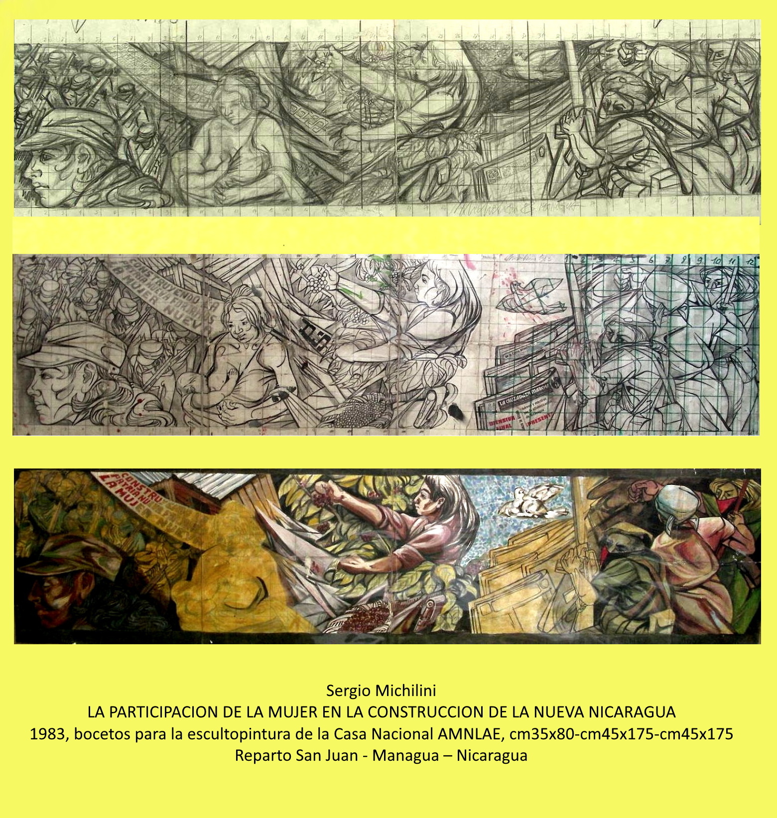 En julio de 1983 realizamos una “escultopintura” en el muro frontal de la “Casa Nacional AMNLAE” (Asociación de Mujeres Nicaragüenses Luisa Amanda Espinoza) que prácticamente determinó la aprobación del financiamiento para el Proyecto de la “Escuela Nacional de Arte Público-Monumental David Alfaro Siqueiros” en Managua, Nicaragua