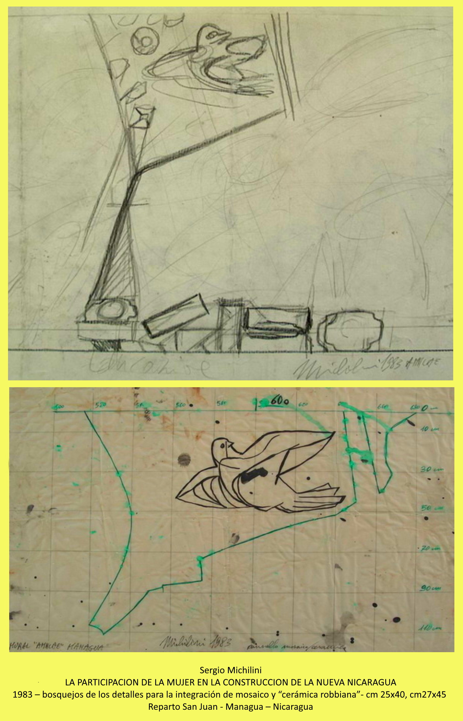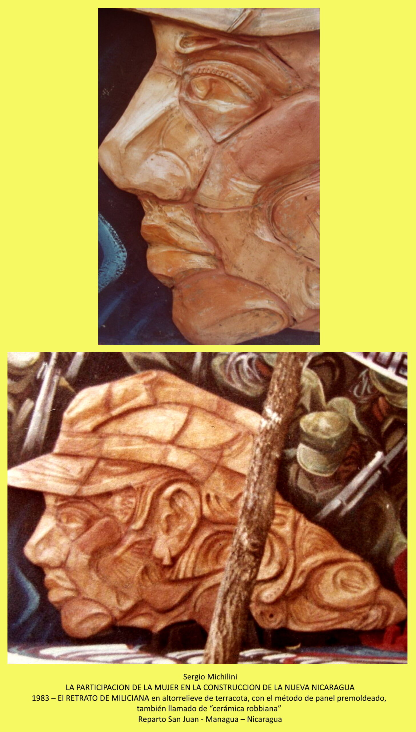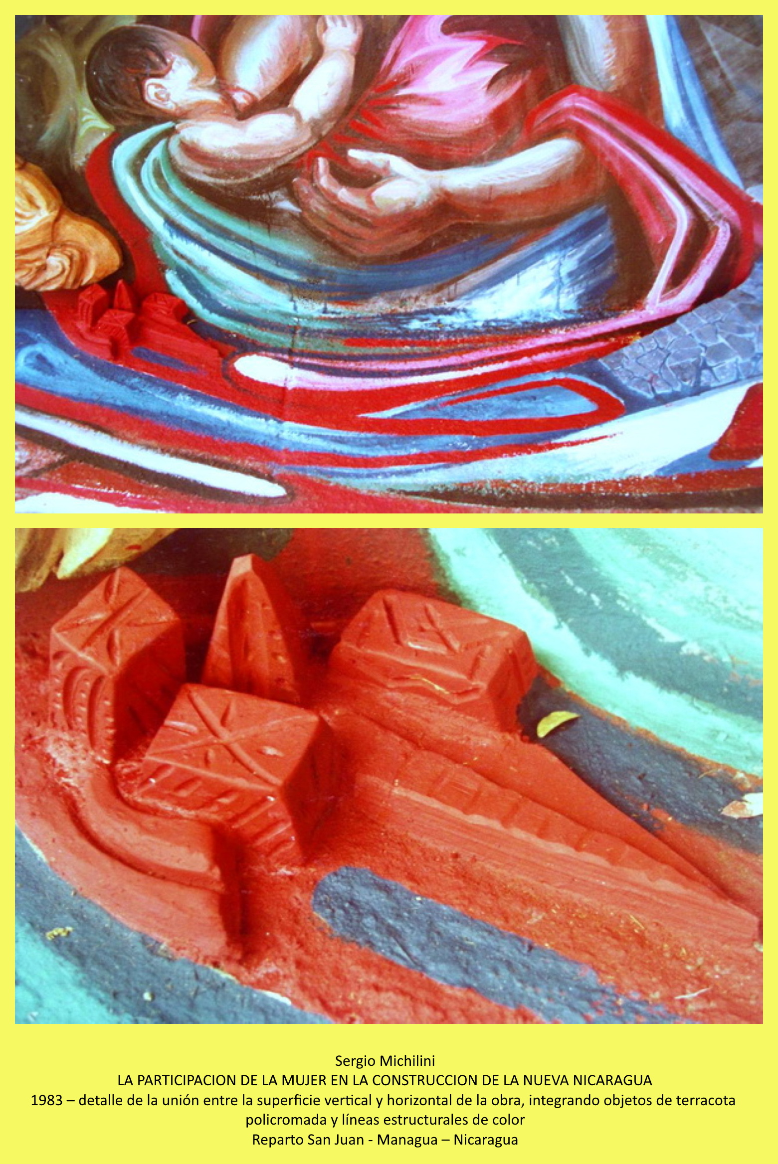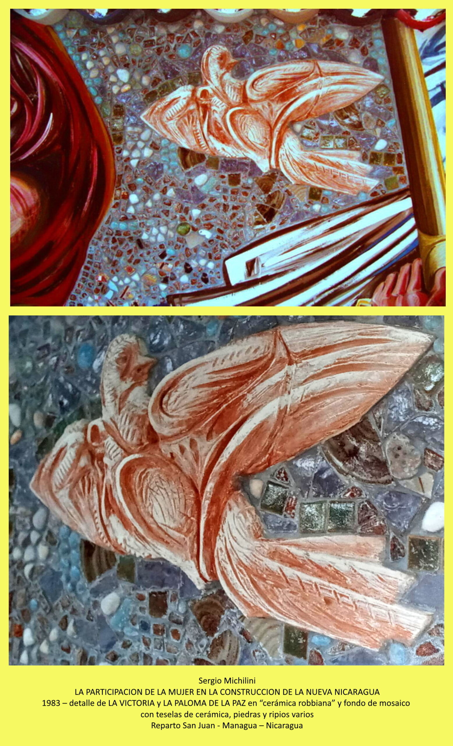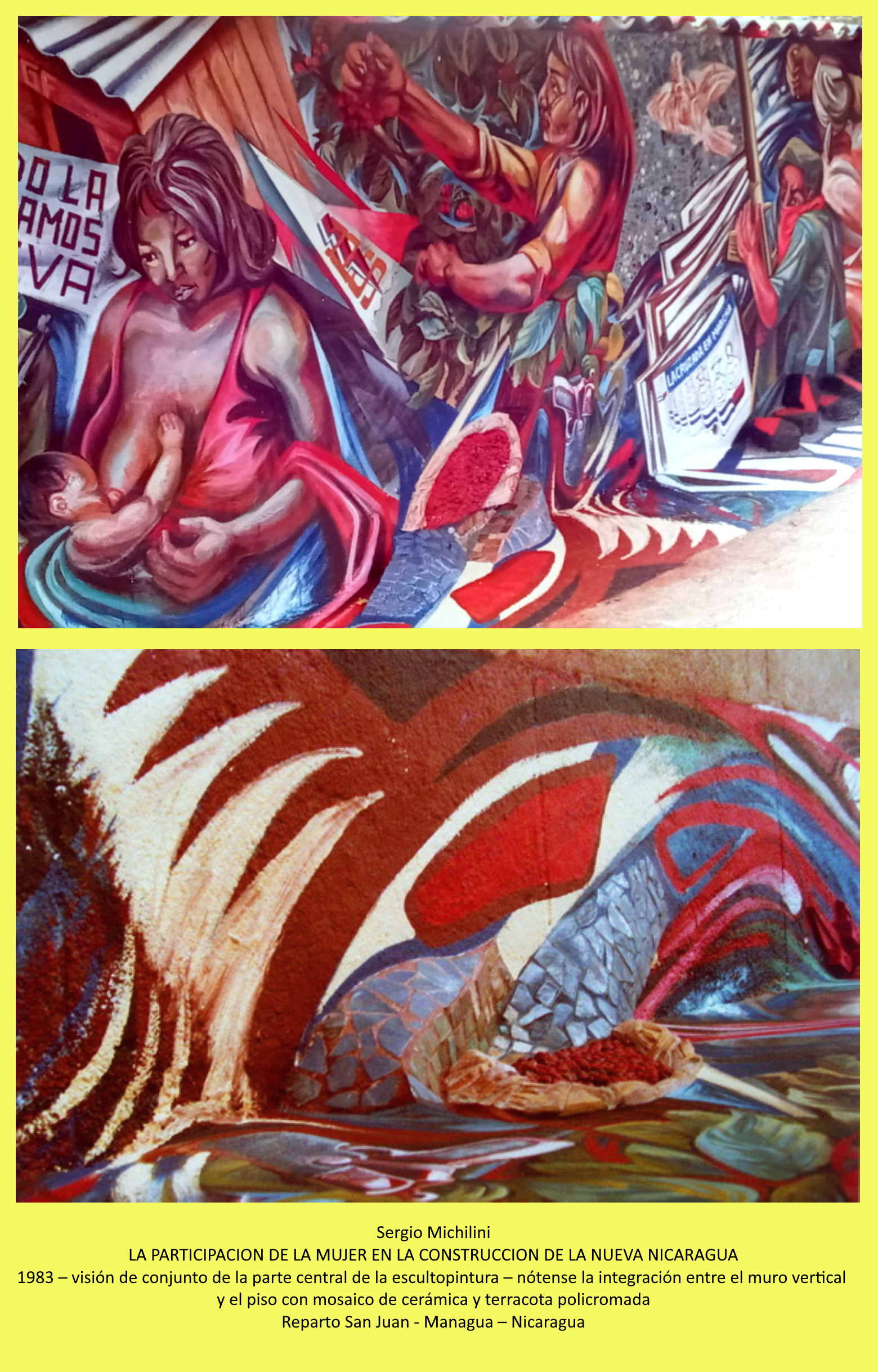 Teníamos que usar esta oportunidades y aprovechar el momento para realizar una obra de impacto, para sacudir las almas y las mentes de la cooperación y solidaridad italiana con Nicaragua y por esta motivación decidimos realizar una ESCULTOPINTURA en donde, además de utilizar la pintura acrílica y el ensamblaje de objetos varios, por primera vez en este país integrar fragmentos de “MOSAICO” y “CERAMICA ROBBIANA”, resultando ser arquetipos o prototipos de unas tradiciones hoy absolutamente consolidadas en Nicaragua.
