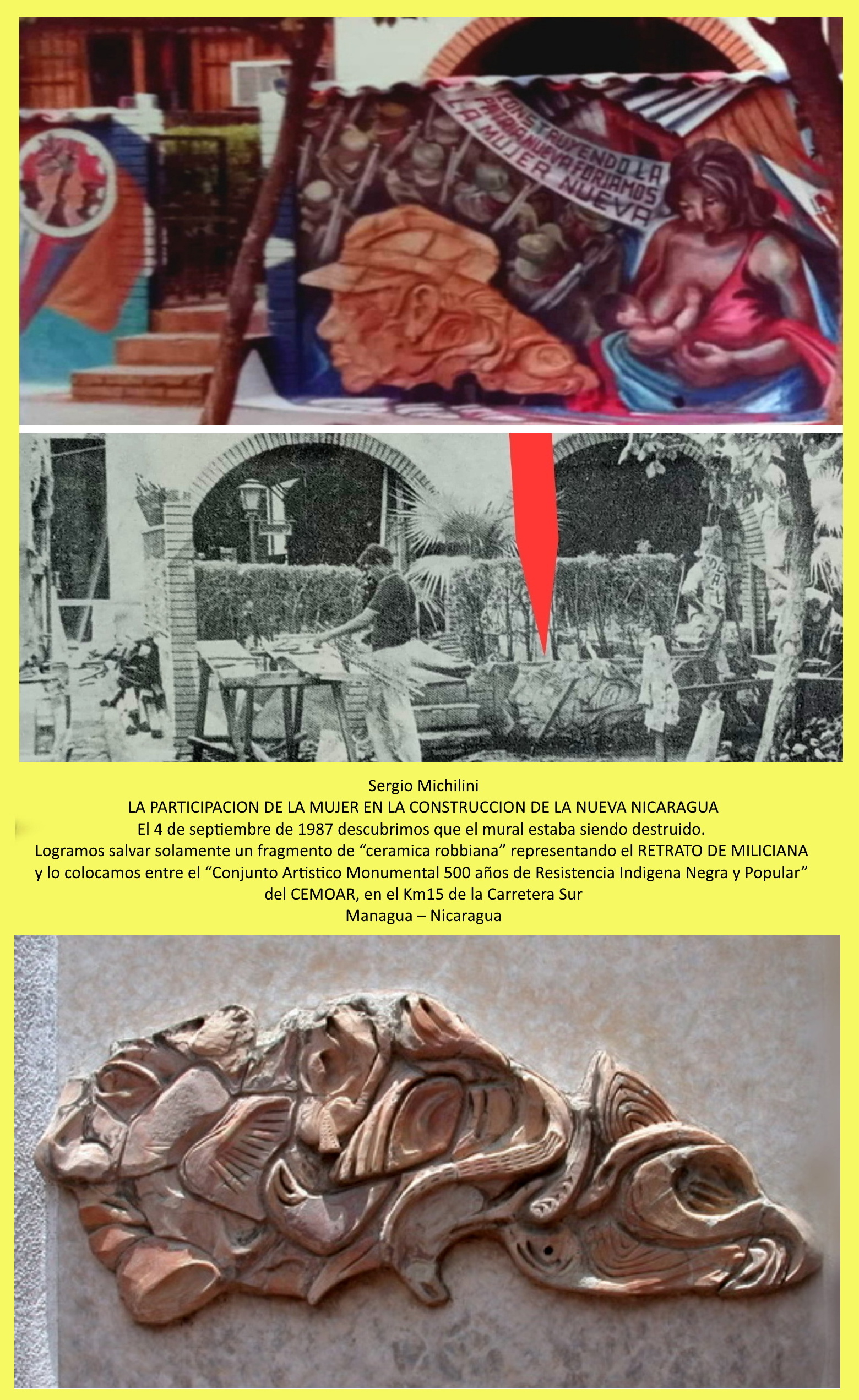 Logramos salvar solamente parte del altorrelieve de terracota de la mujer miliciana, que instalamos en el CEMOAR (Km.15.5 Carretera Sur, Managua Nicaragua) como memoria eterna del atropello al Arte Publico.