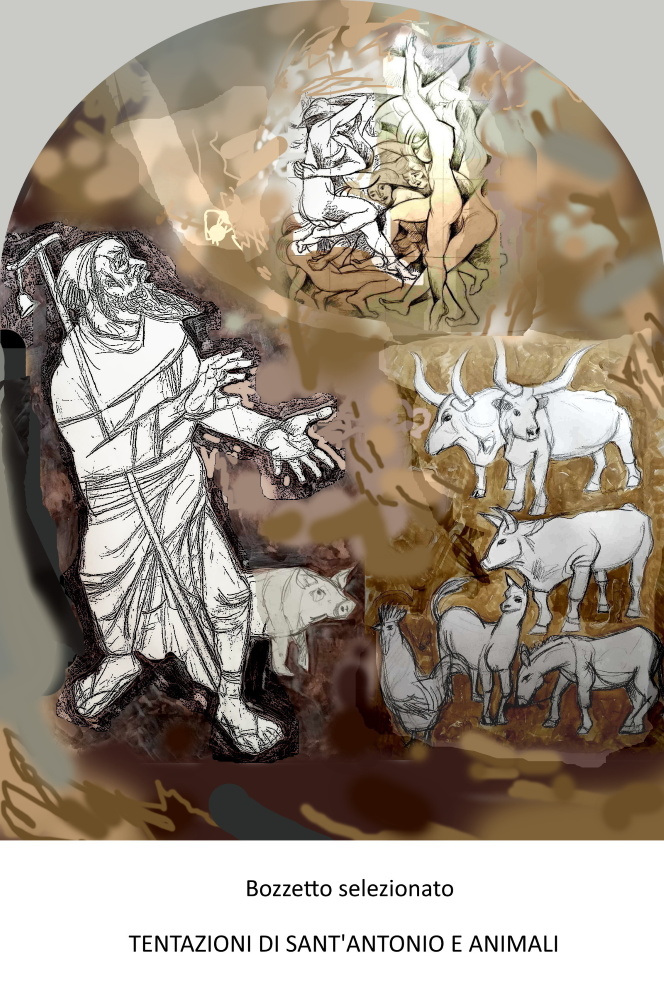 Sergio Michilini TENTAZIONI DI SANT’ANTONIO 2025, bozzetto, cm50x35