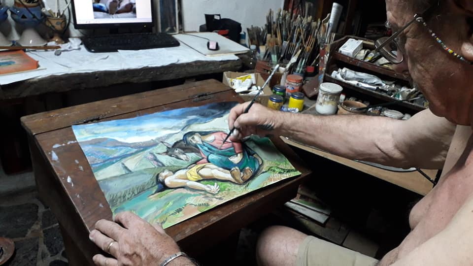 Nella Chiesa Madre di Rocchetta ho studiato la scultura di Sant’Antonio Abate, cercando di ripensarlo per davvero eremita nel deserto, in Egitto, tra stenti e pensieri, come visionario fondatore del monachesimo cristiano…..umano con tutte le necessitá, debolezze, tentazioni possibili…e sorprese improvvise come ho cercato di rappresentarlo.