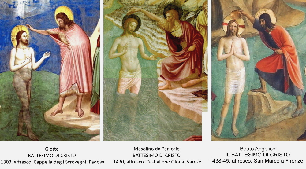 Anche Giotto e Beato Angelico e tutti i “Battesimi” del ‘300 e ‘400 (che sono il periodo piú alto della Storia dell’Arte italiana ed europea) sono commoventi, e non solo per l’azzurrite o il contrasto con l’oltremare appena scoperto, ma anche per il loro carattere fresco, vivo, luminoso, primigenio, di un nuovo inizio…per quello che la filosofa messicana Katya Mandoki definisce “EL INDISPENSABLE EXCESO DE LA ESTÉTICA” (l’indispensabile eccesso dell’estetica) che é emozione, sensualitá ed allegria per la vita……che é quello che vorremmo ricreare oggi, in questa epoca opaca e oscura che ci tocca vivere.